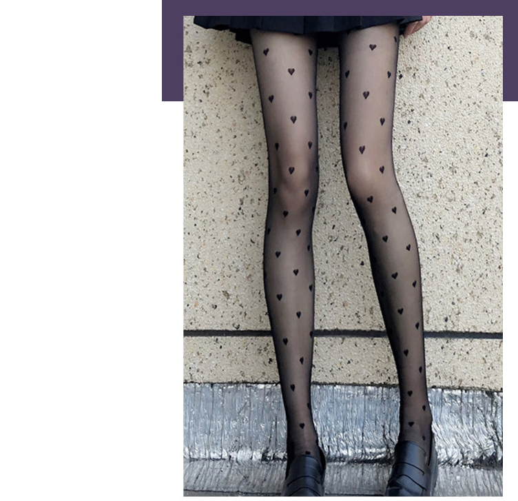 Imagine this: You sashay through the room, legs sleek and shadows dancing under the shimmering heart patterns. The opaque black fabric hugs your curves like a second skin, while the delicate hearts whisper tales of secret desires and midnight rendezvous. Heads turn, hearts race, and you leave a trail of whispered curiosity in your wake. You're not just wearing stockings, you're wearing an aura of confidence and irresistible danger.