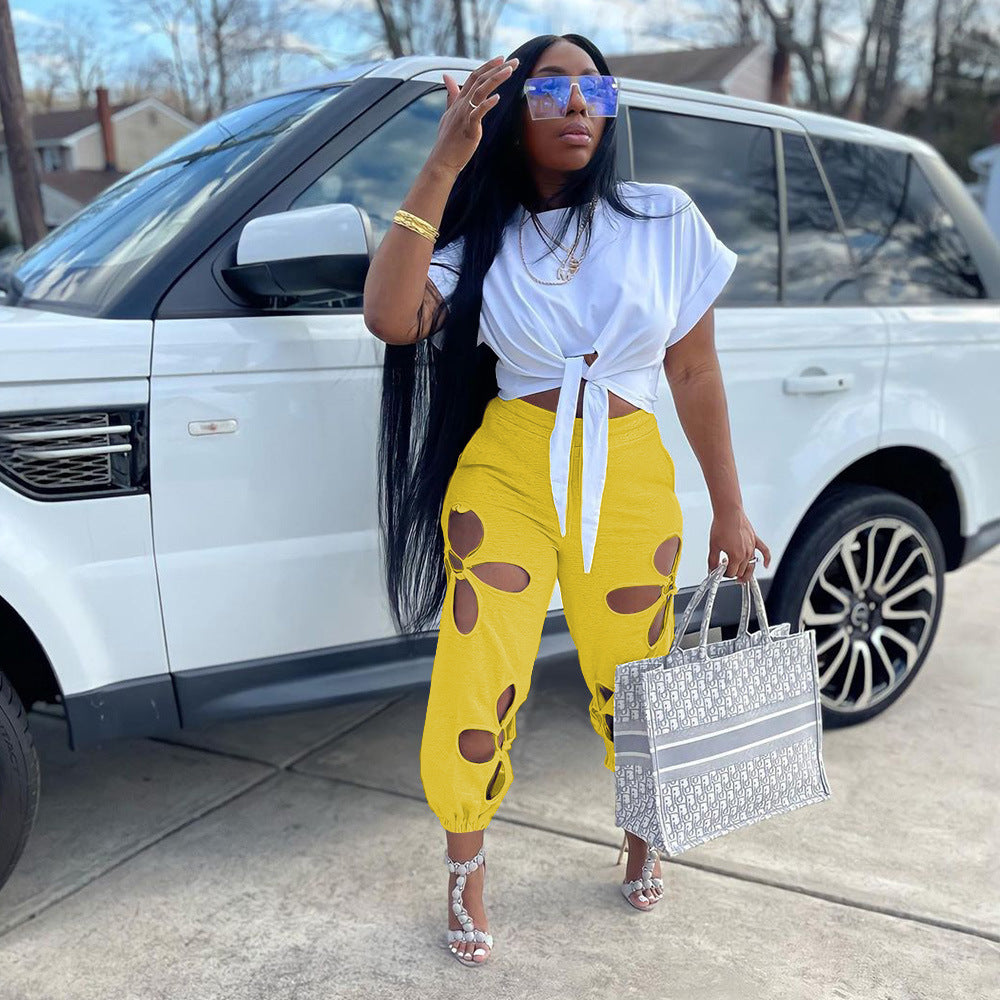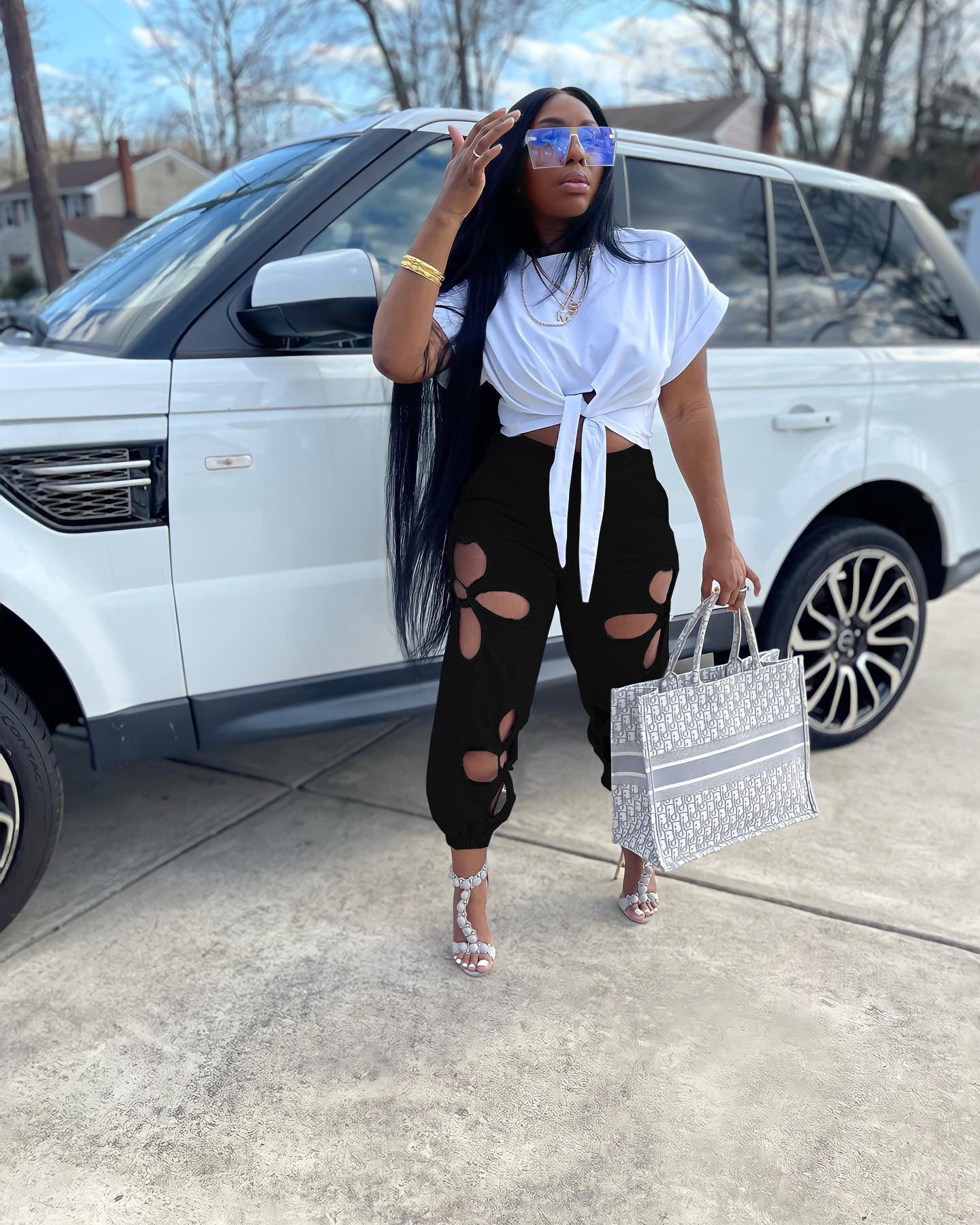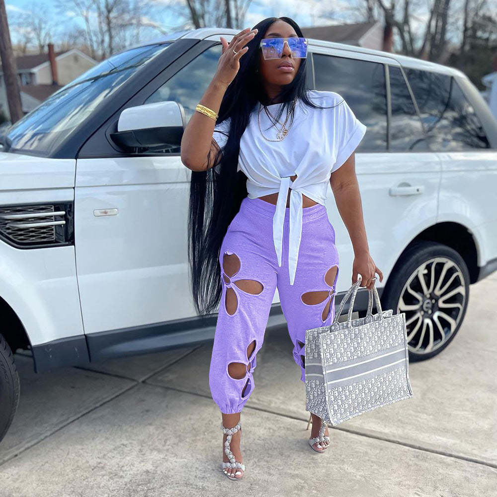 Show Some Skin with Style: Women's Cut-Out Casual Pants (Multiple Colors)