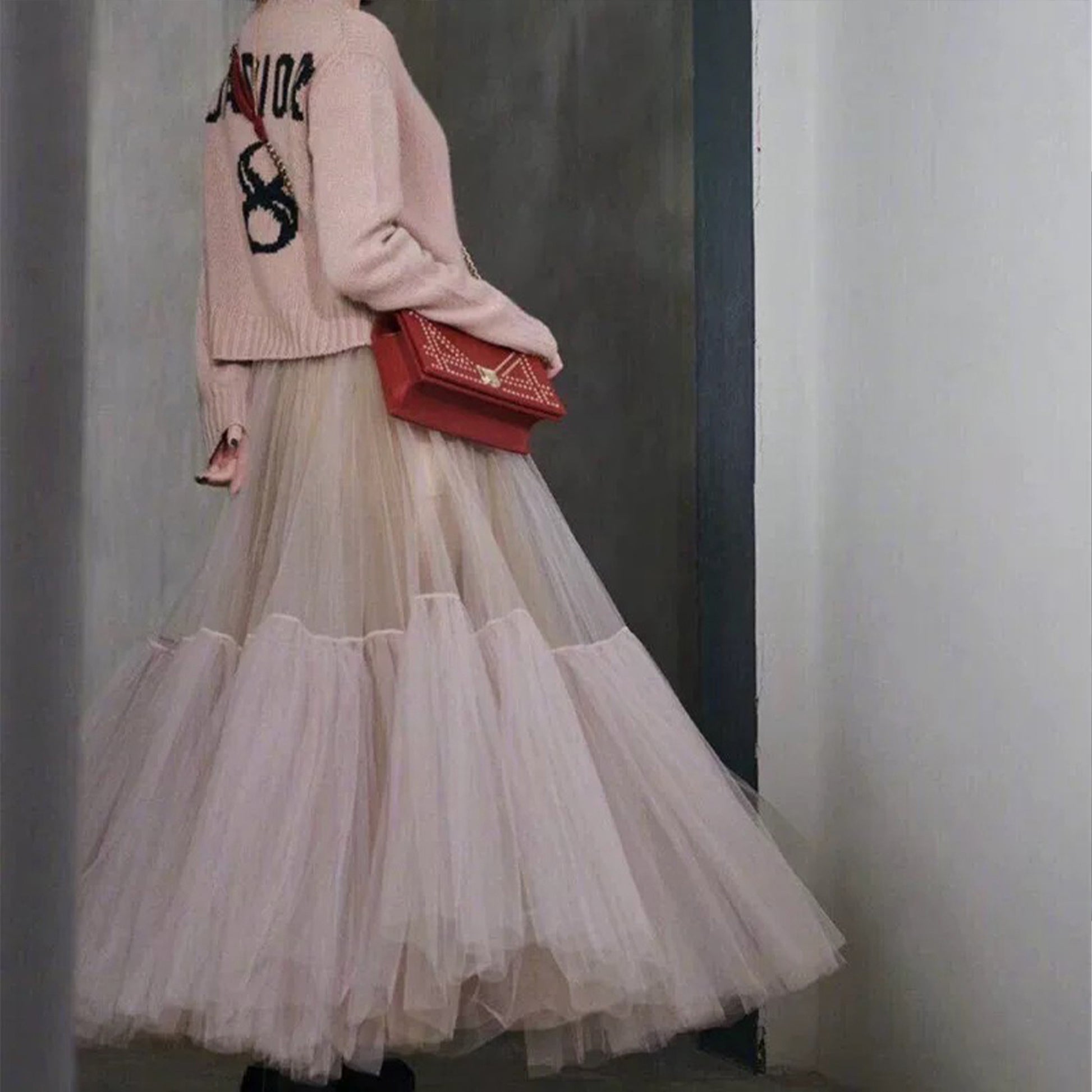 Crafted from luxurious mesh fabric soft tulle mesh, this skirt offers a touch of ethereal elegance. The mid-length silhouette flatters your legs while keeping you comfortable. Choose between a convenient elastic waistband for a relaxed fit or a zipper closure for a more polished look.