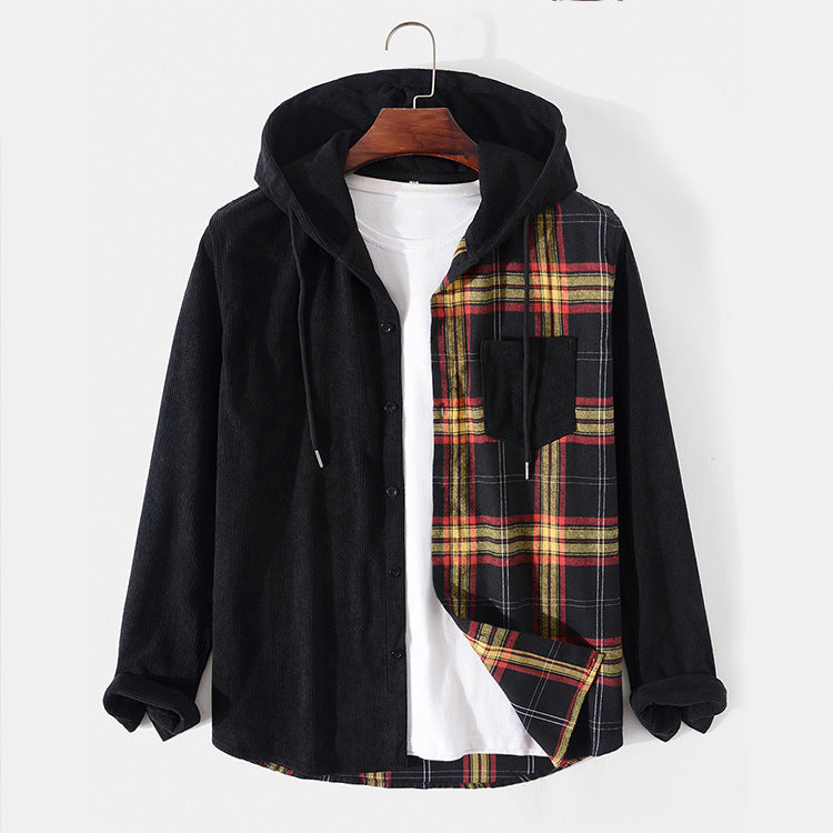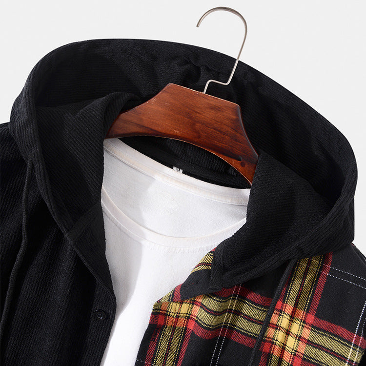 Level Up Your Layering Game: Men's Plaid/Solid Button Up Hoodie