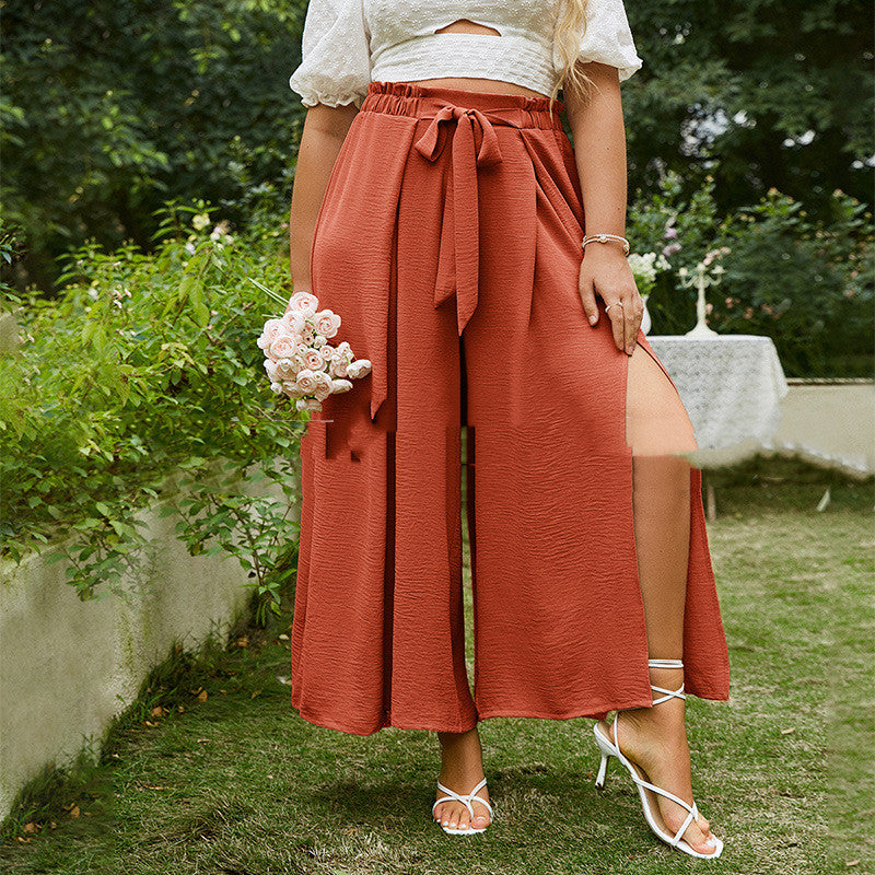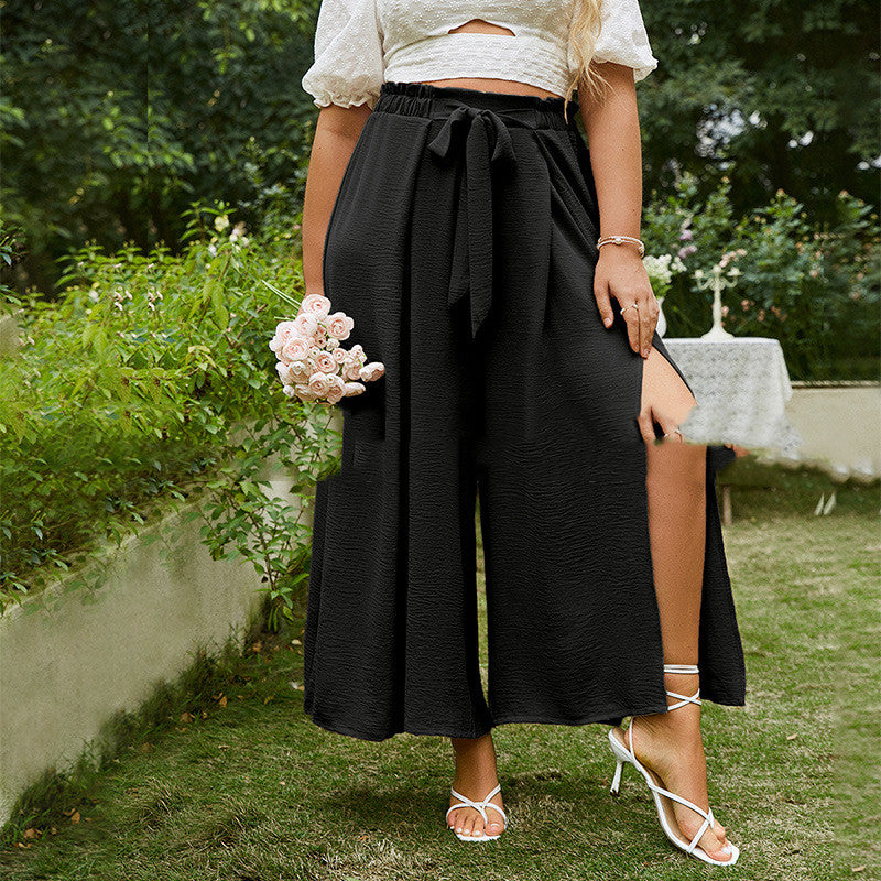 Plus Size High-waisted Commuter Buckle Loose-fitting Pants (Multiple Colors)