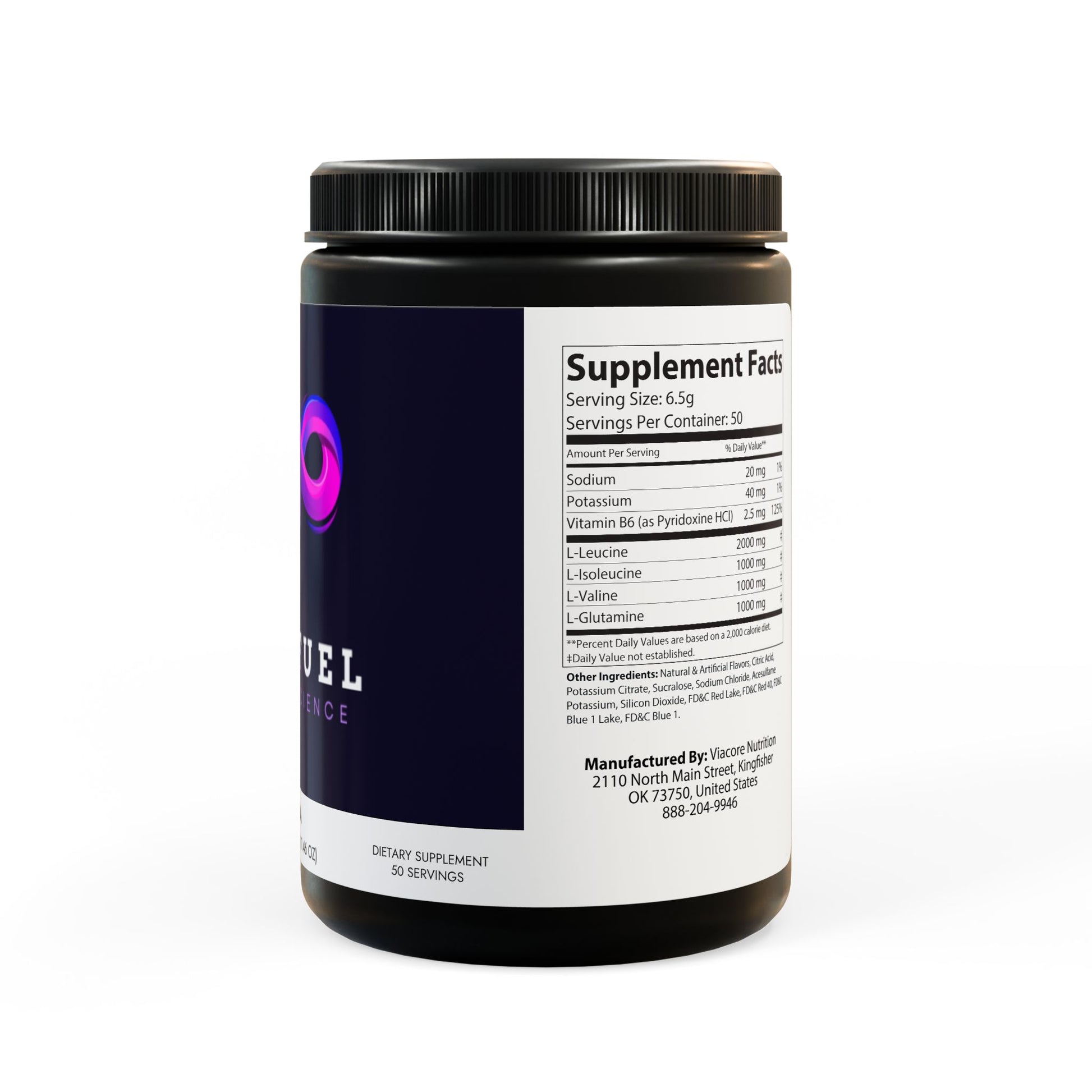 Key ingredients include Sodium, Potassium, Vitamin B6 (as Pyridoxine HCl), L-Leucine, L-Isoleucine, L-Valine, and L-Glutamine.
