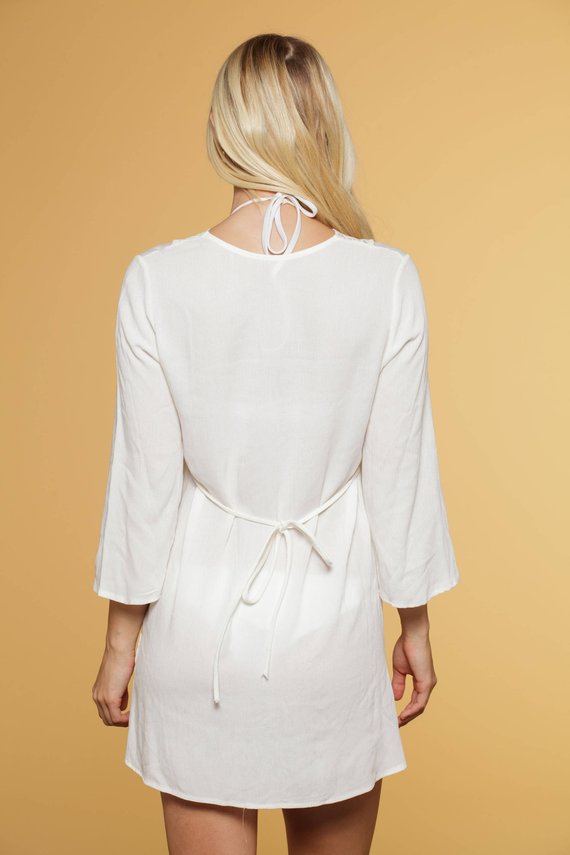 Embrace effortless elegance and beachy vibes with our White Lace Detail Beach Coverup with Waist Tie! This stunning coverup combines the airy comfort of a beach dress with the delicate touch of lace, making it the perfect piece to transition from the beach to the bar.