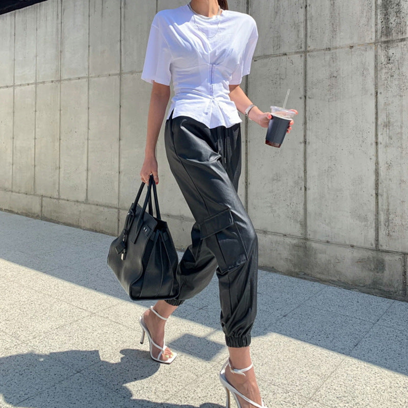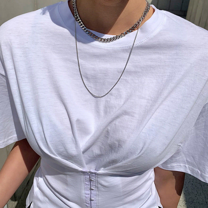 This stunning white t-shirt isn't your average tee. Featuring a built-in corset, it offers a touch of edgy sophistication that effortlessly elevates your everyday look.