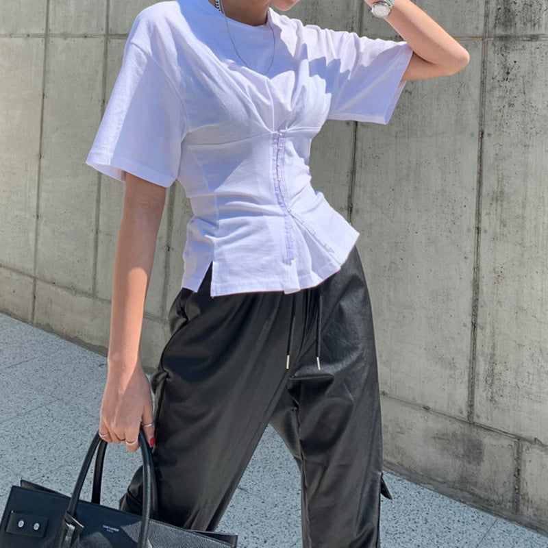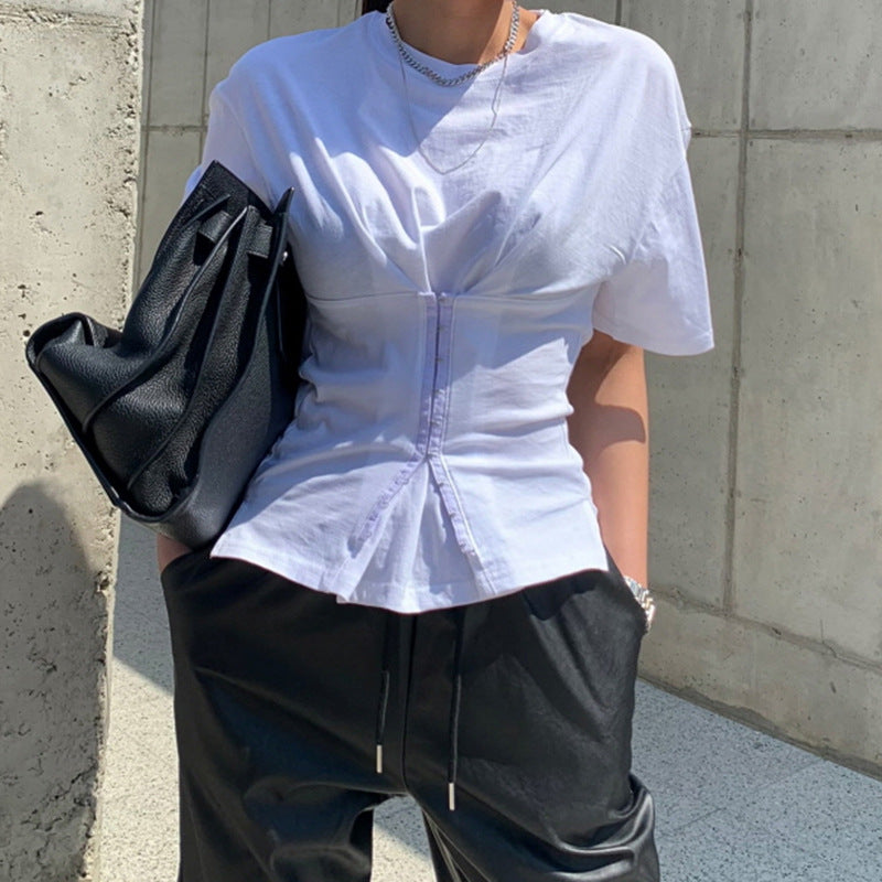 Elevate Your Everyday Style: White Fashion T-Shirt with Built-In Corset