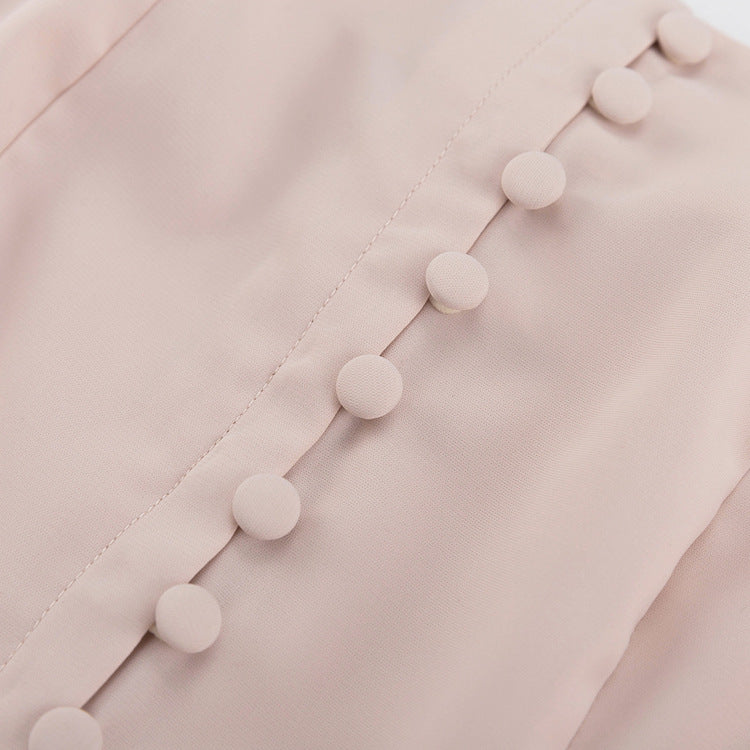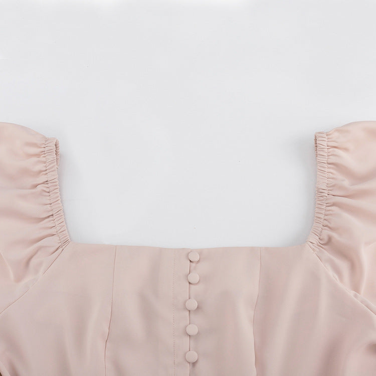 Beautiful A-Line Square Collar Puff Sleeve Dress w/Button Detail (Apricot)