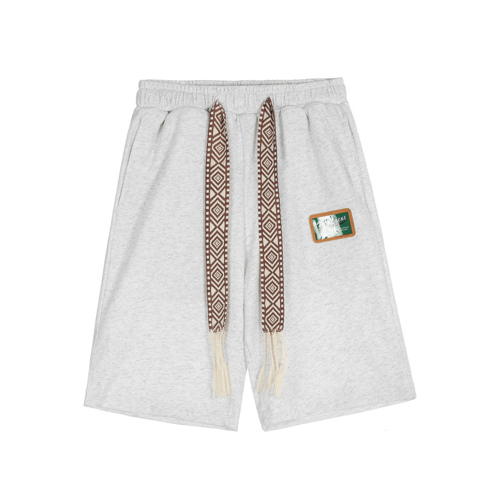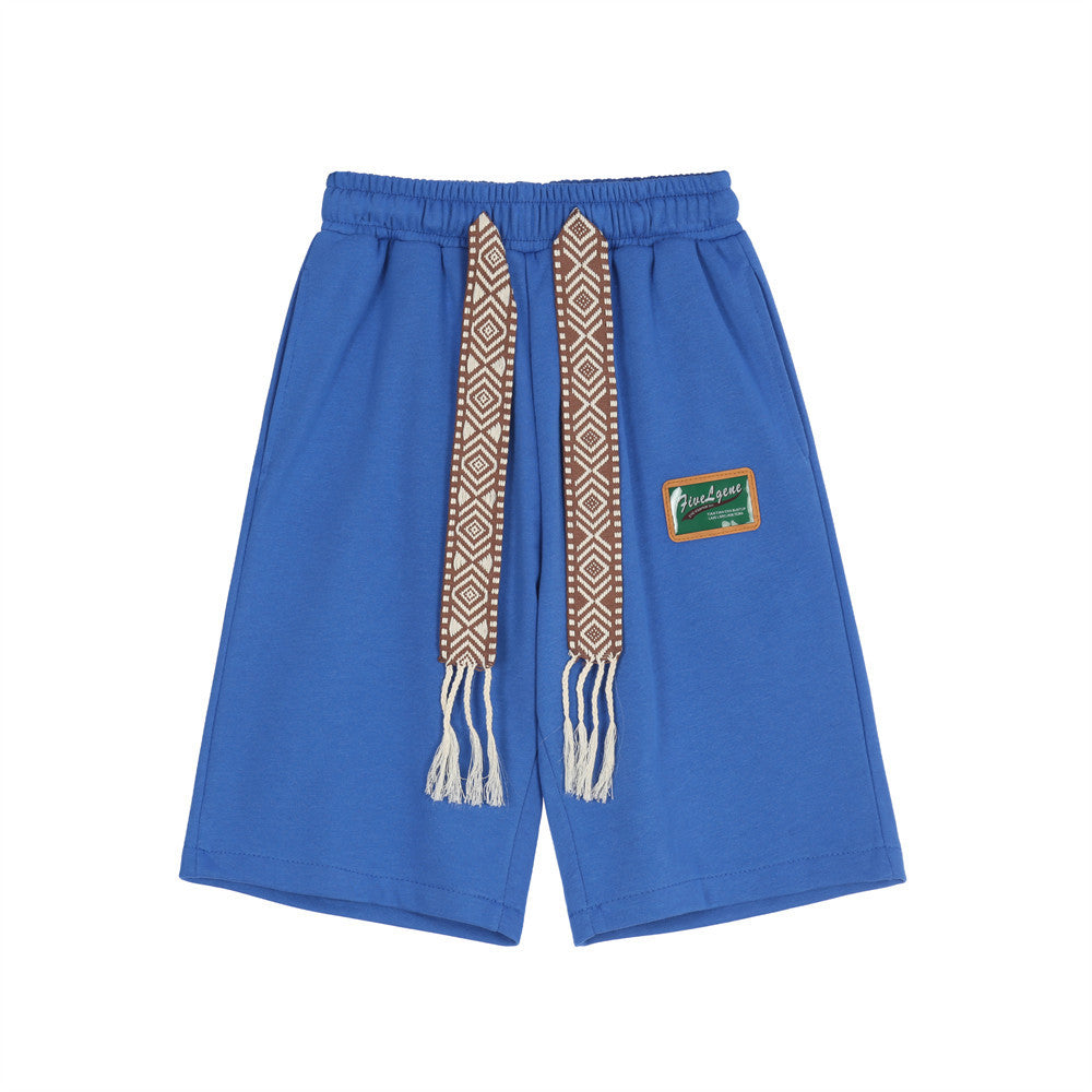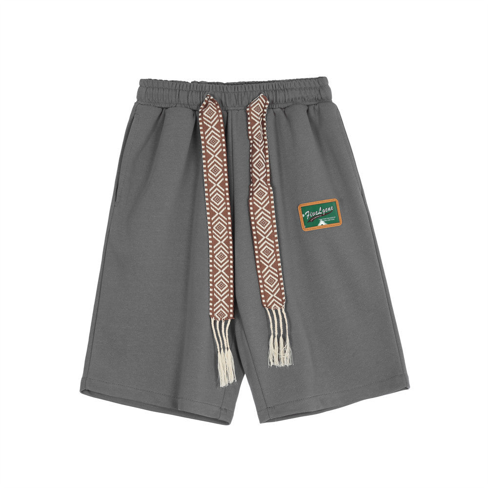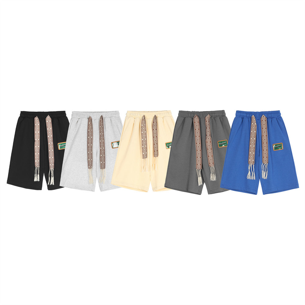 Cotton Embroidered Waist Tassel Elastic Waist Patch Shorts (Multiple Colors)