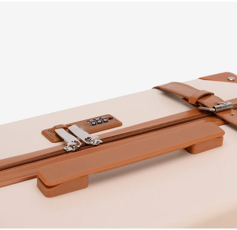 Imagine this: You glide through the airport terminal, heads turning at the sight of your luggage. The sophisticated curves and rich, faux leather of the suitcase evoke a bygone era of train journeys and transatlantic crossings. Every detail, from the antiqued hardware to the vintage-inspired lining, whispers of stories waiting to be written. But beneath the nostalgic charm lies a set built for the modern traveler.